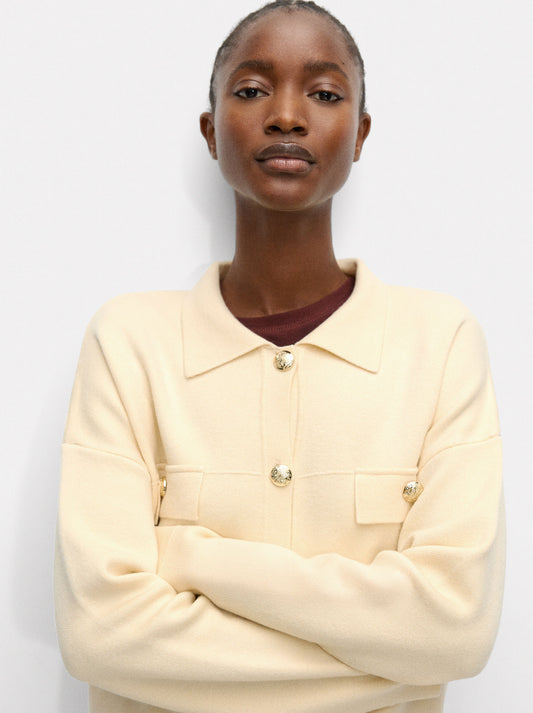 Cardigan With Wool And Gold Buttons