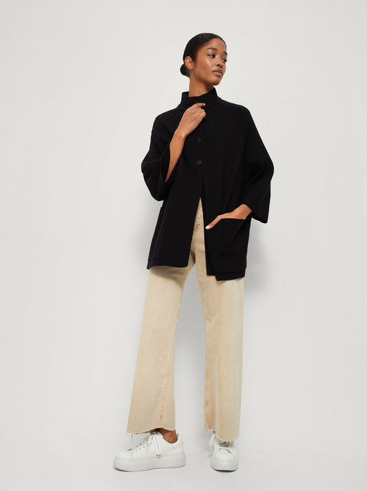 Knit Poncho With High Neck