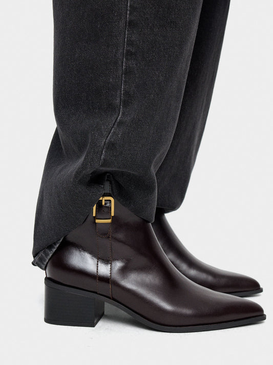 Leather Ankle Boots With Buckle