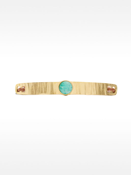 Leather Bracelet With Oval Detail And Stone