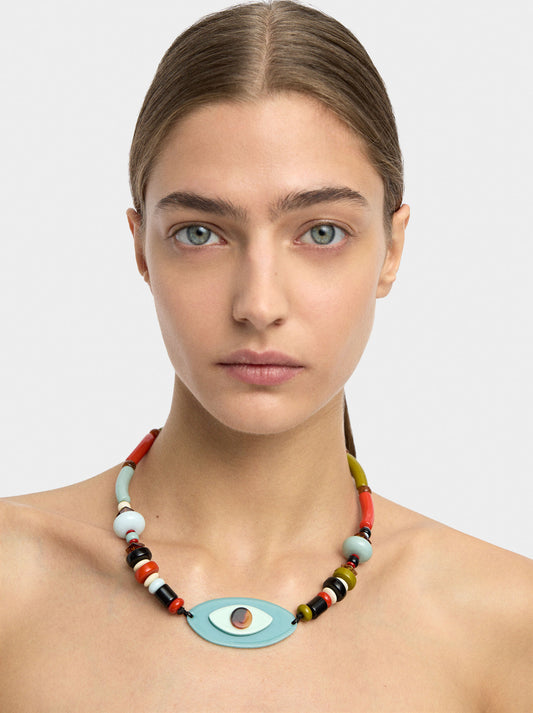 Short Necklace With Multicolor Beads And Eye