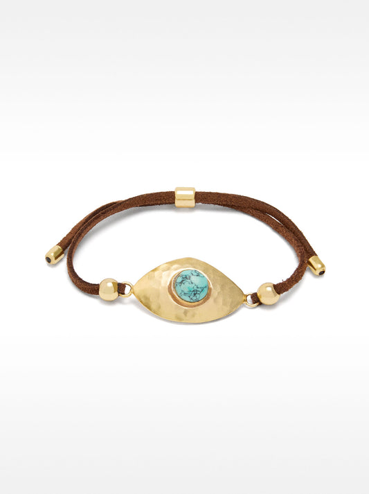Leather Bracelet With Oval Detail And Stone