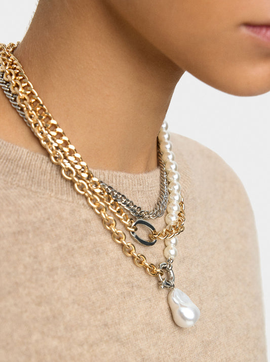 Set Of Bicolor Link Necklaces With Pearls