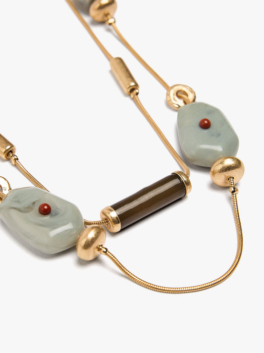Short Double Necklace With Stones And Pendants