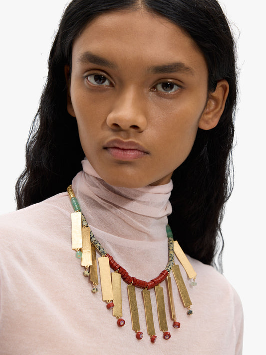 Necklace With Stone Beads And Metallic Fringes