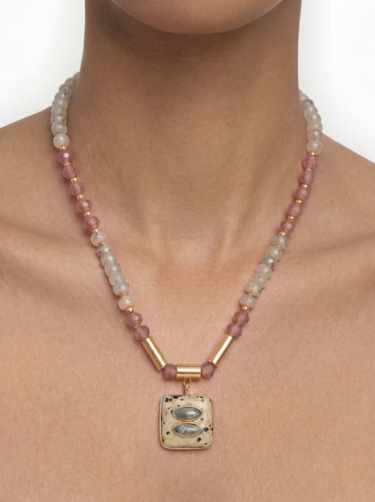 Necklace With Stone Beads And Bars