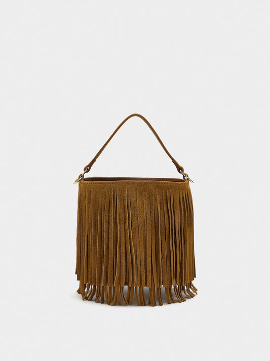 Leather Shoulder Bag With Fringes