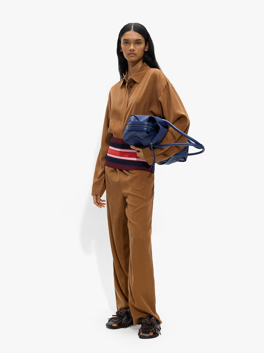 High-Neck Blouse With Drawstring