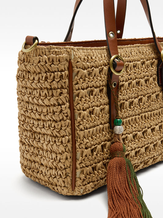 Straw-Effect Tote Bag With Pendant