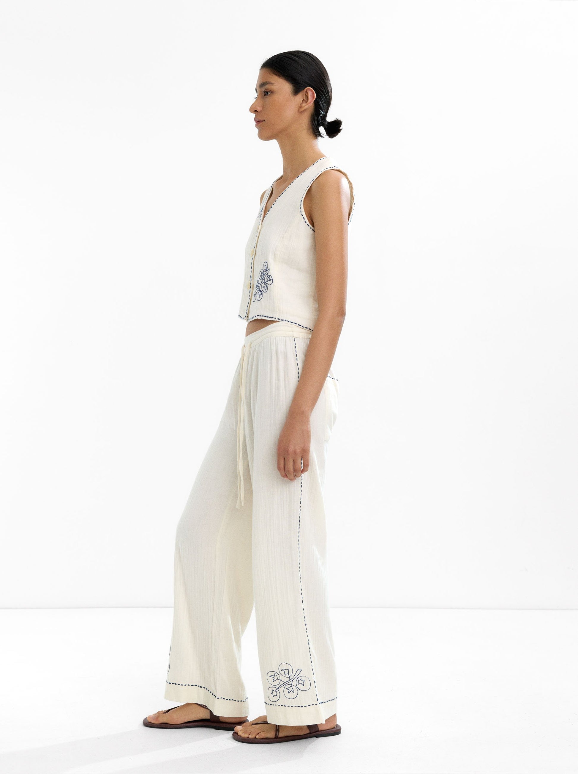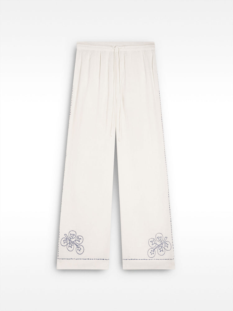 100% Cotton Trousers With Embroidery