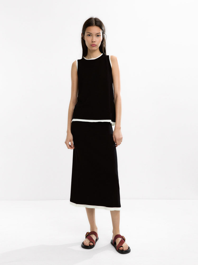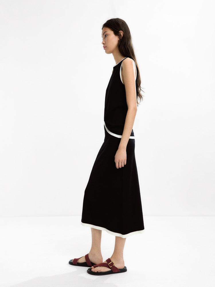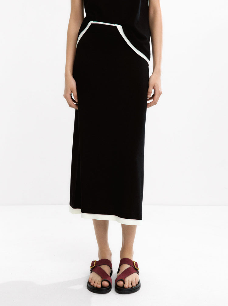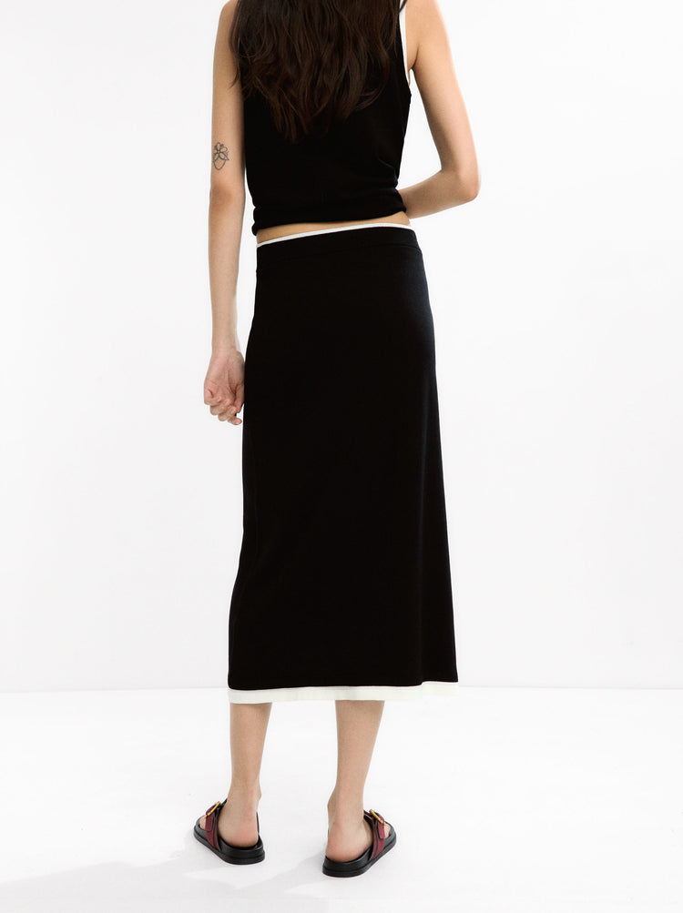 Contrast Knit Midi Skirt