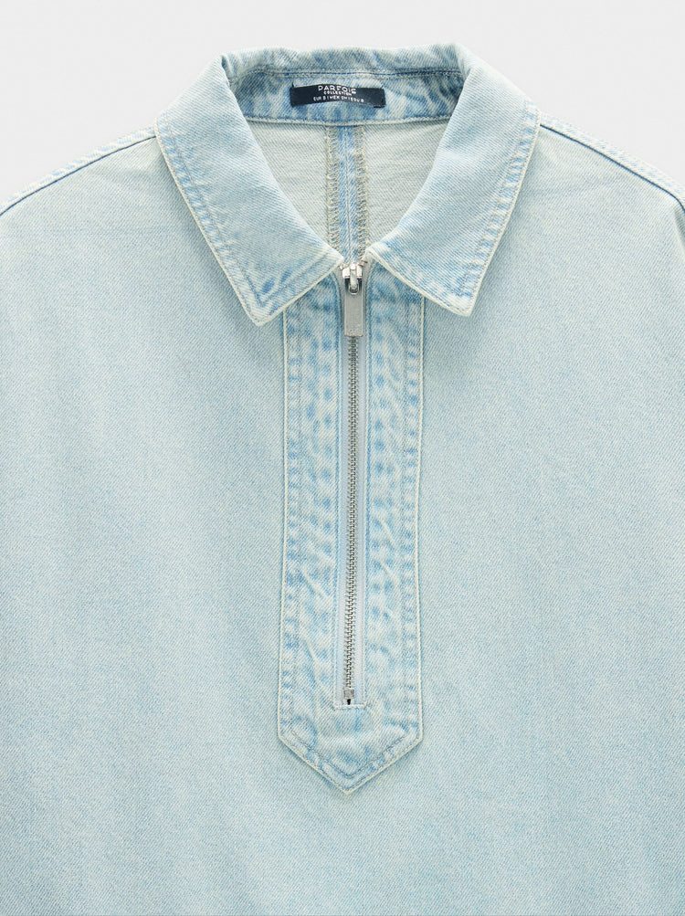 Denim Shirt With Zipper Closure