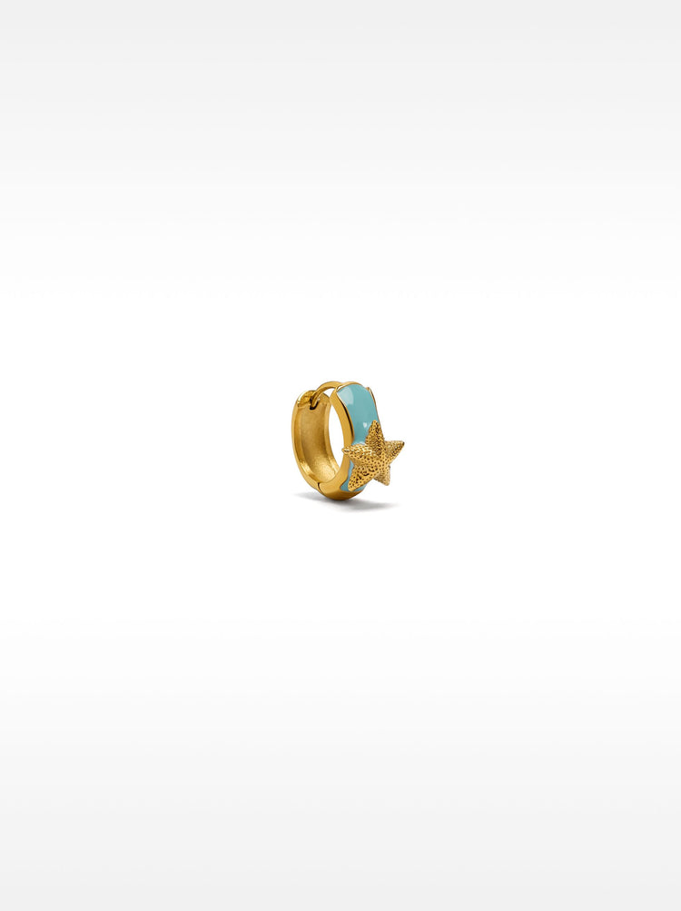 Enamelled Starfish Single Hoop Earring - Stainless Steel