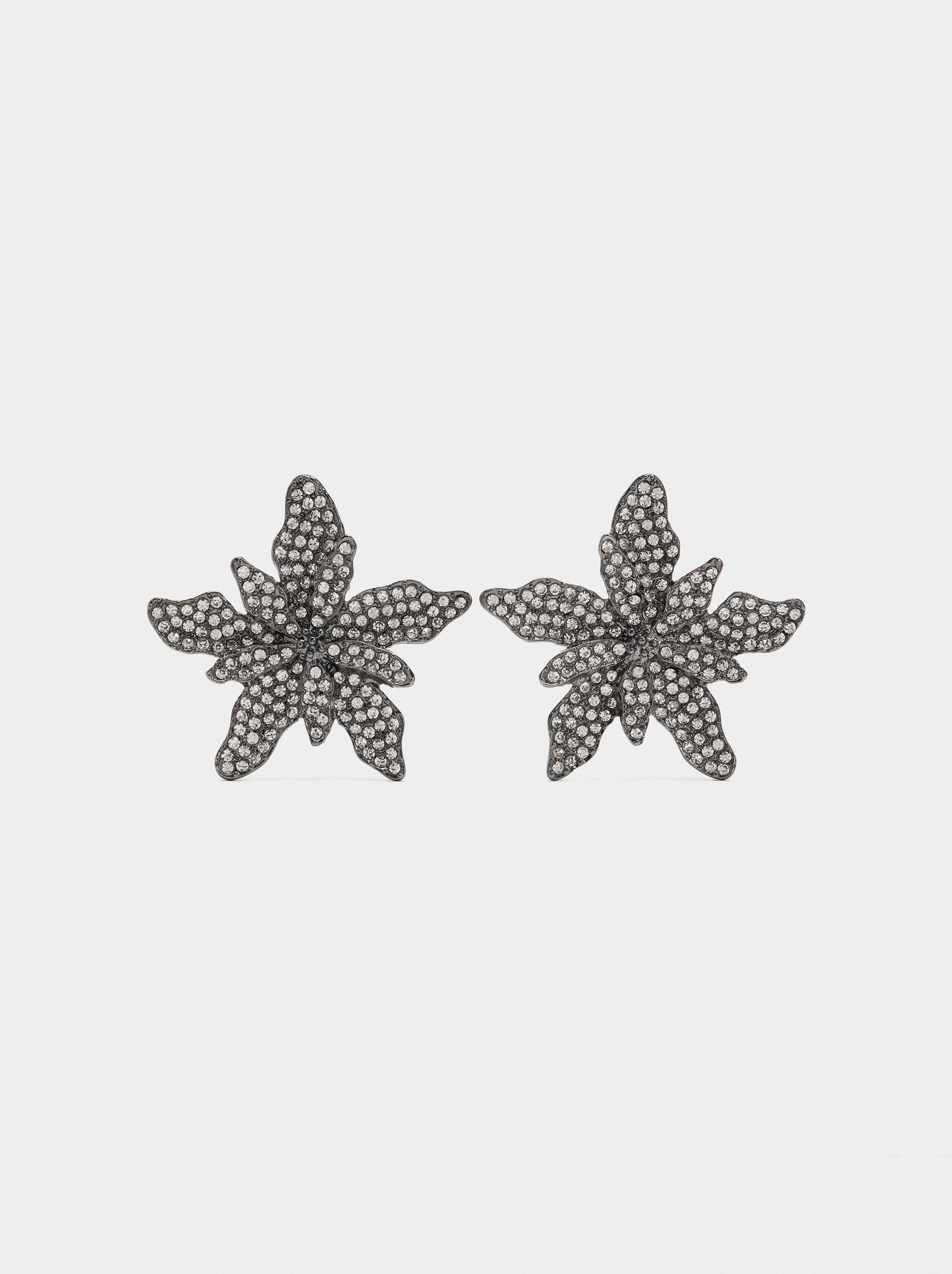 Flower Earrings With Crystals