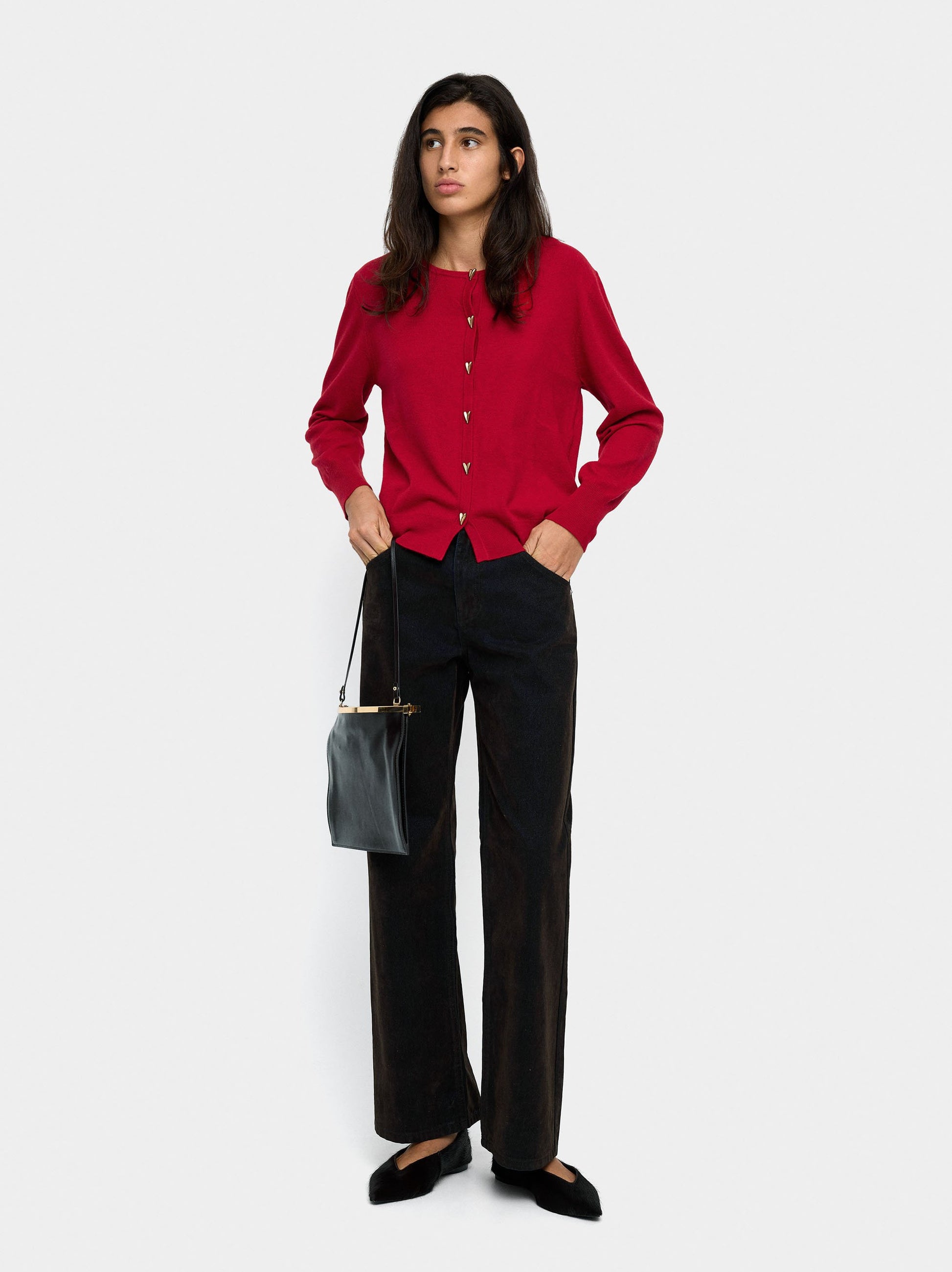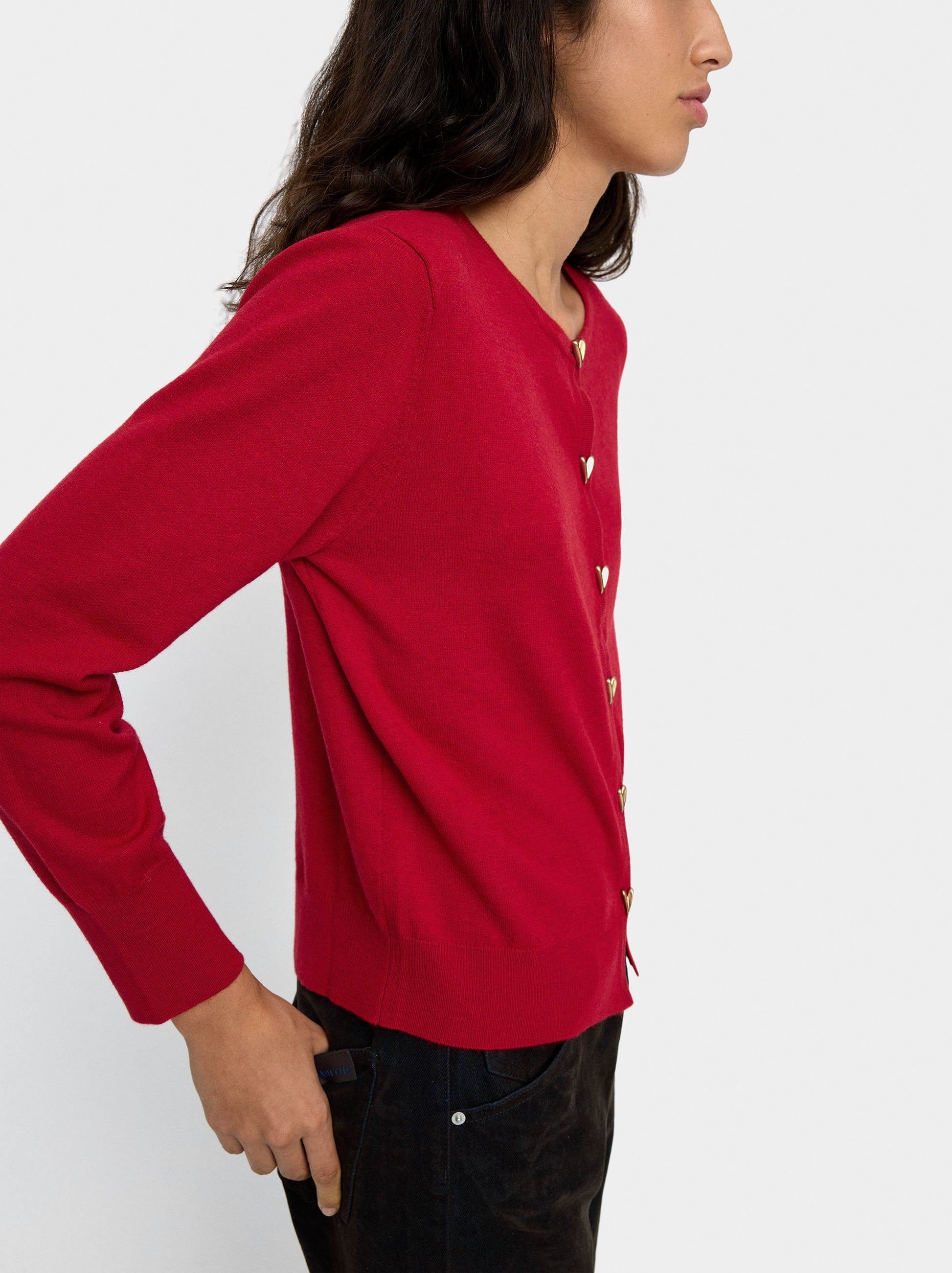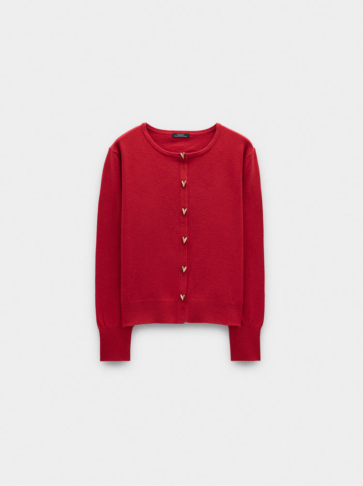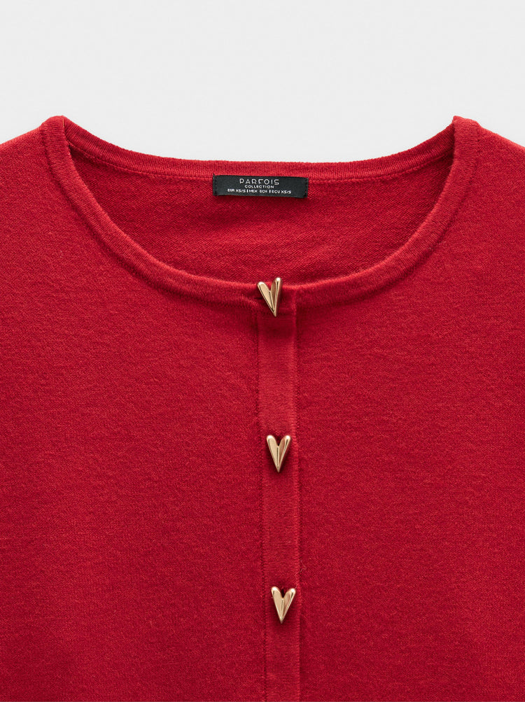 Knit Mesh Cardigan With Heart Buttons