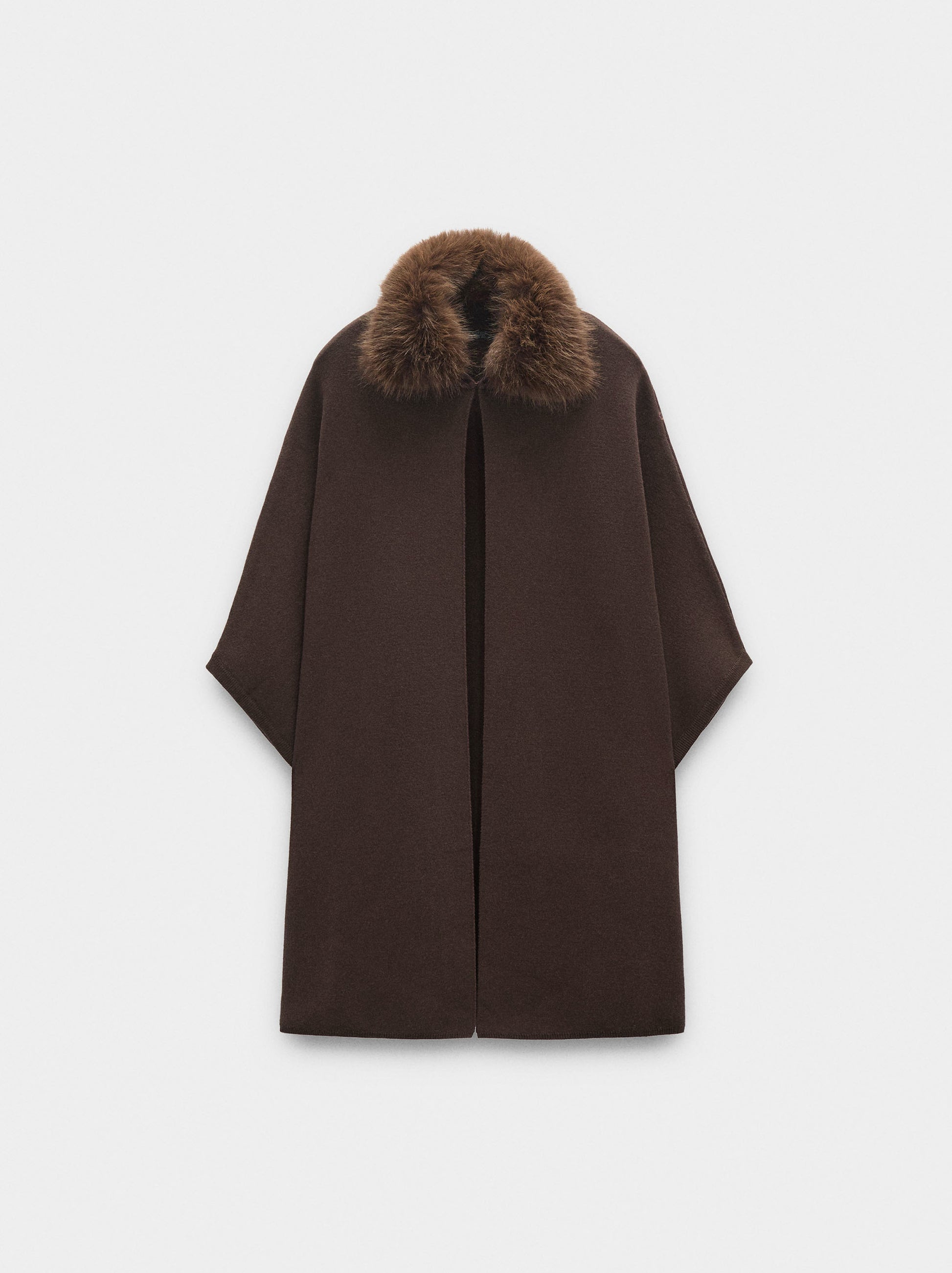 Knit Poncho With Fur-Effect Collar