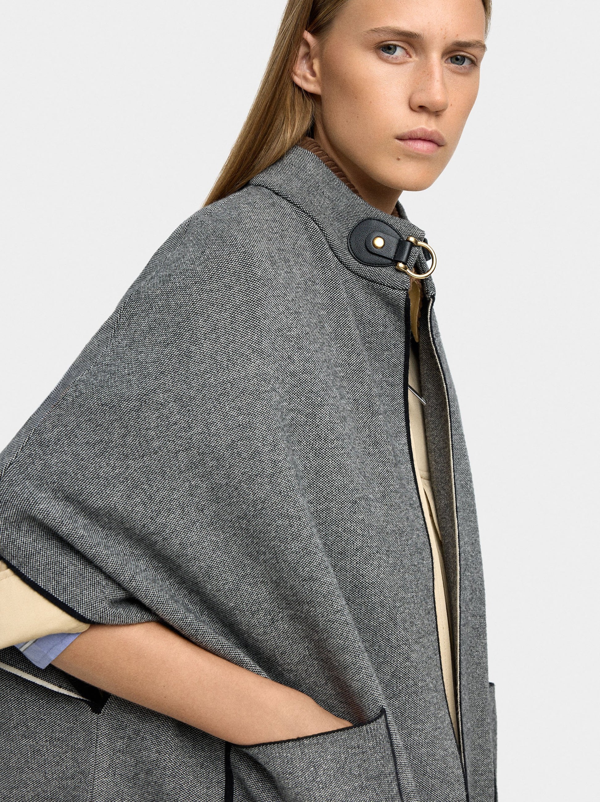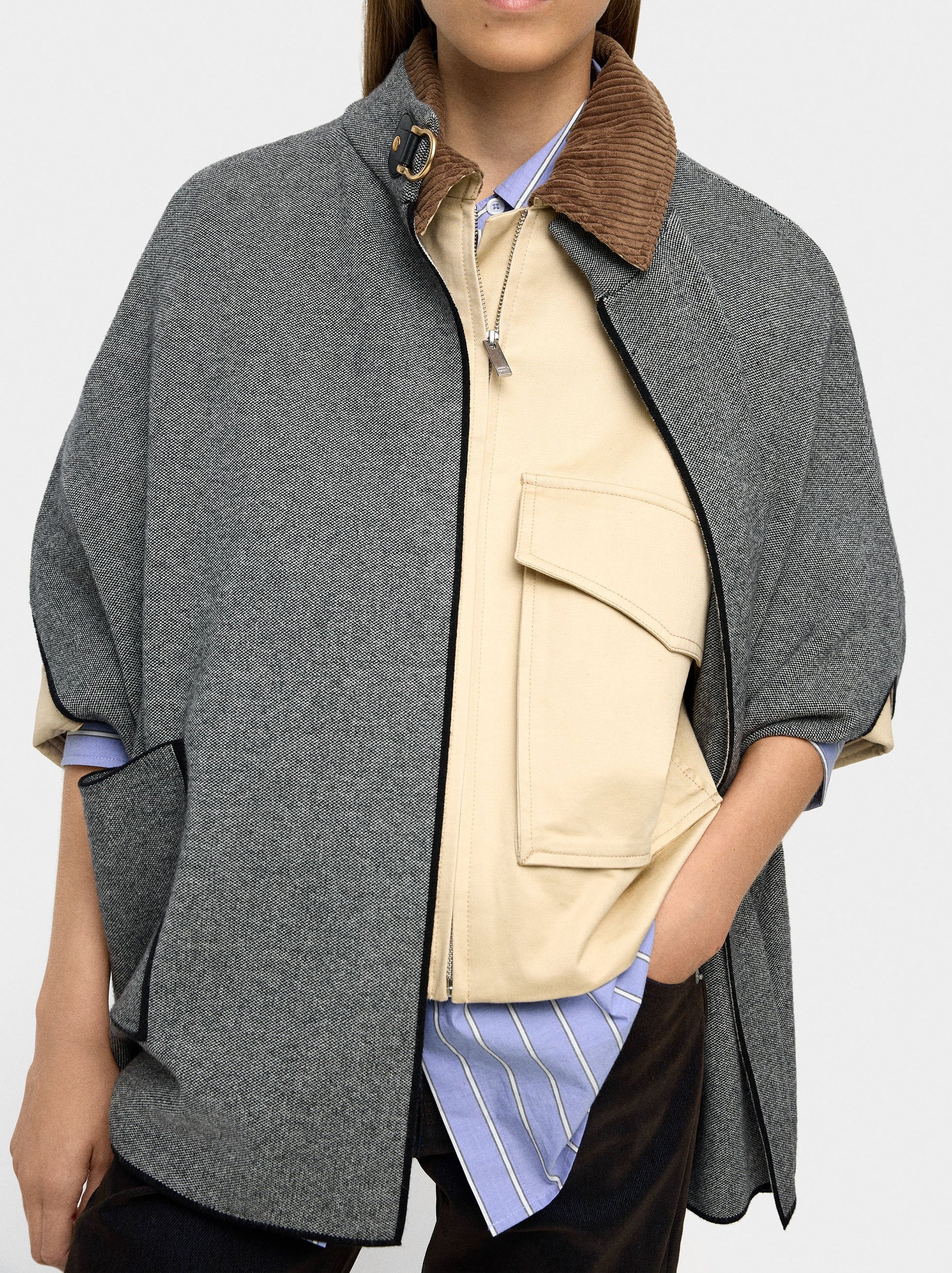 Knitted Poncho With Stitching Detail