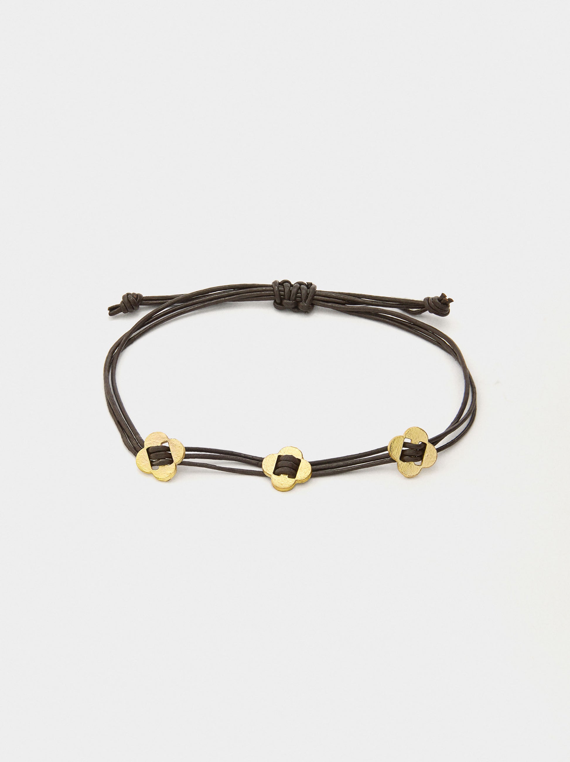 Leather Cord Bracelet With Flower Charms