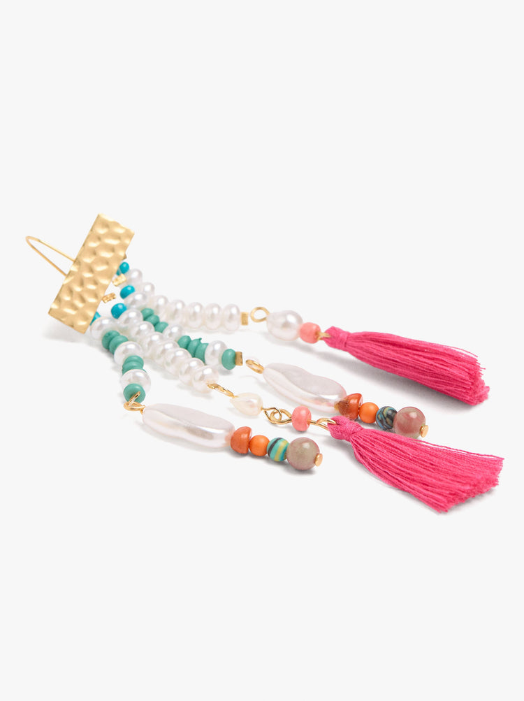 Long Earrings With Stone Beads And Tassels