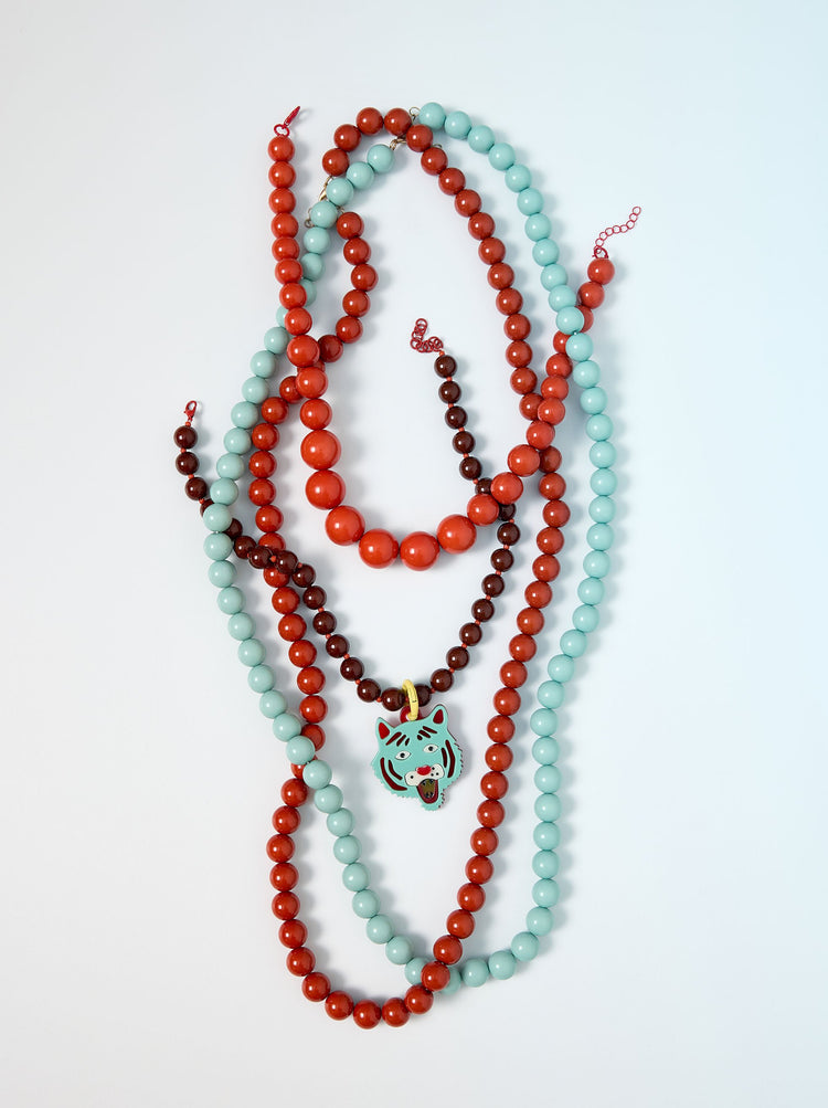 Necklace Of Beads With Tiger Pendant
