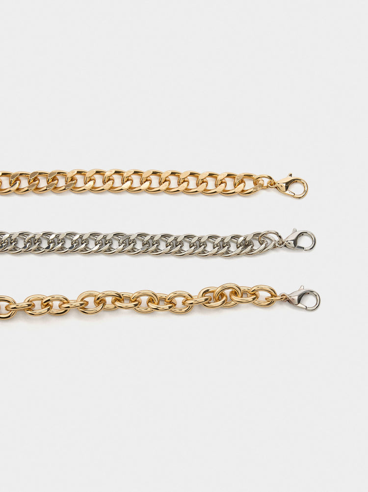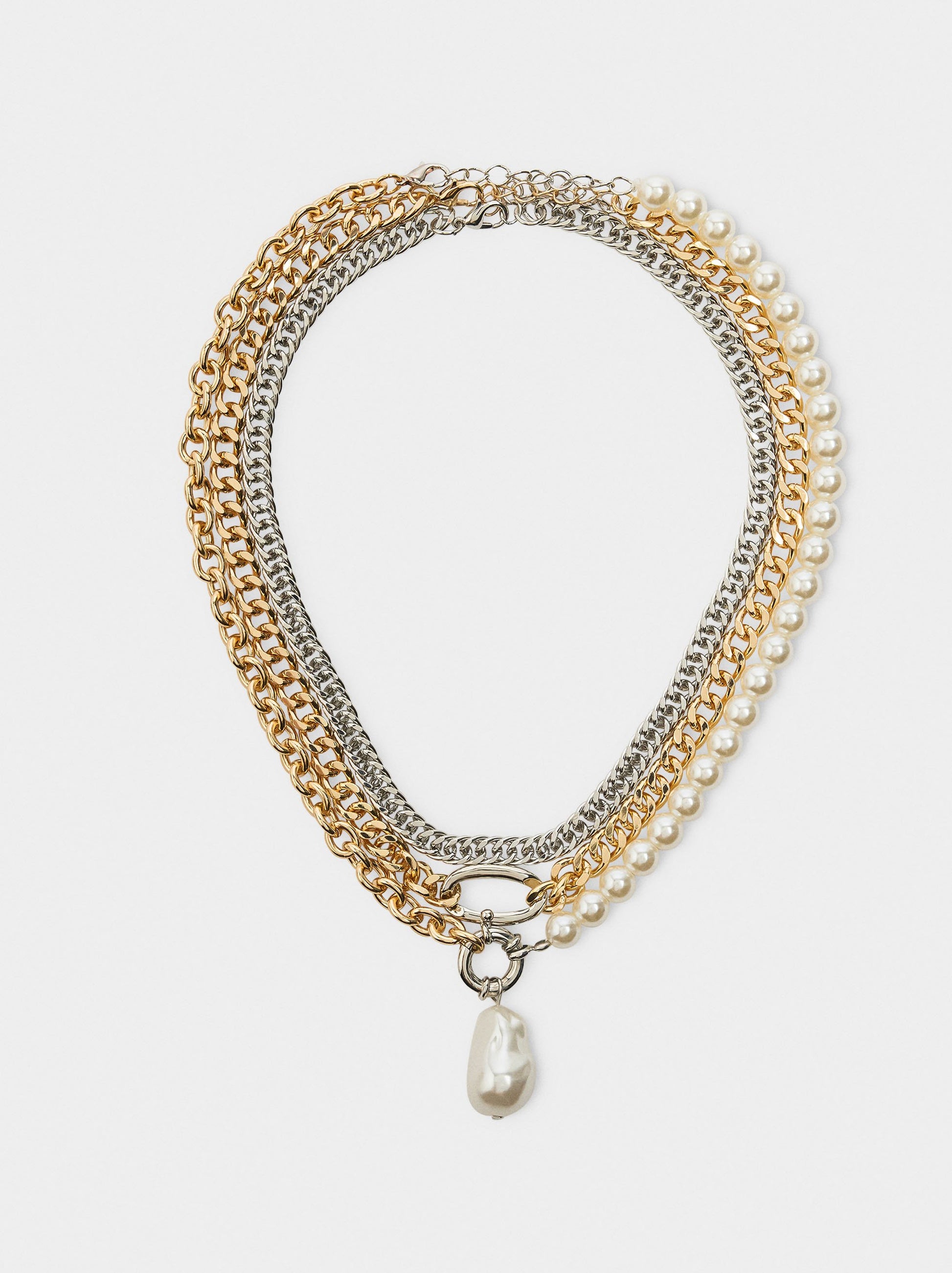 Set Of Bicolor Link Necklaces With Pearls