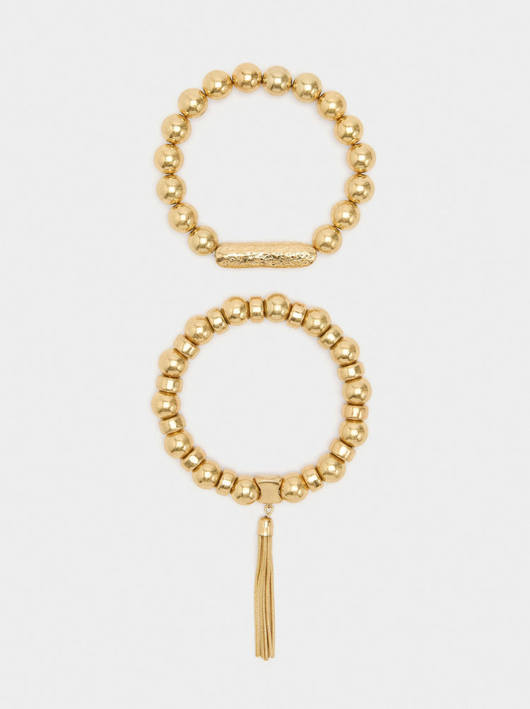 Set Of Bracelets With Metallic Beads