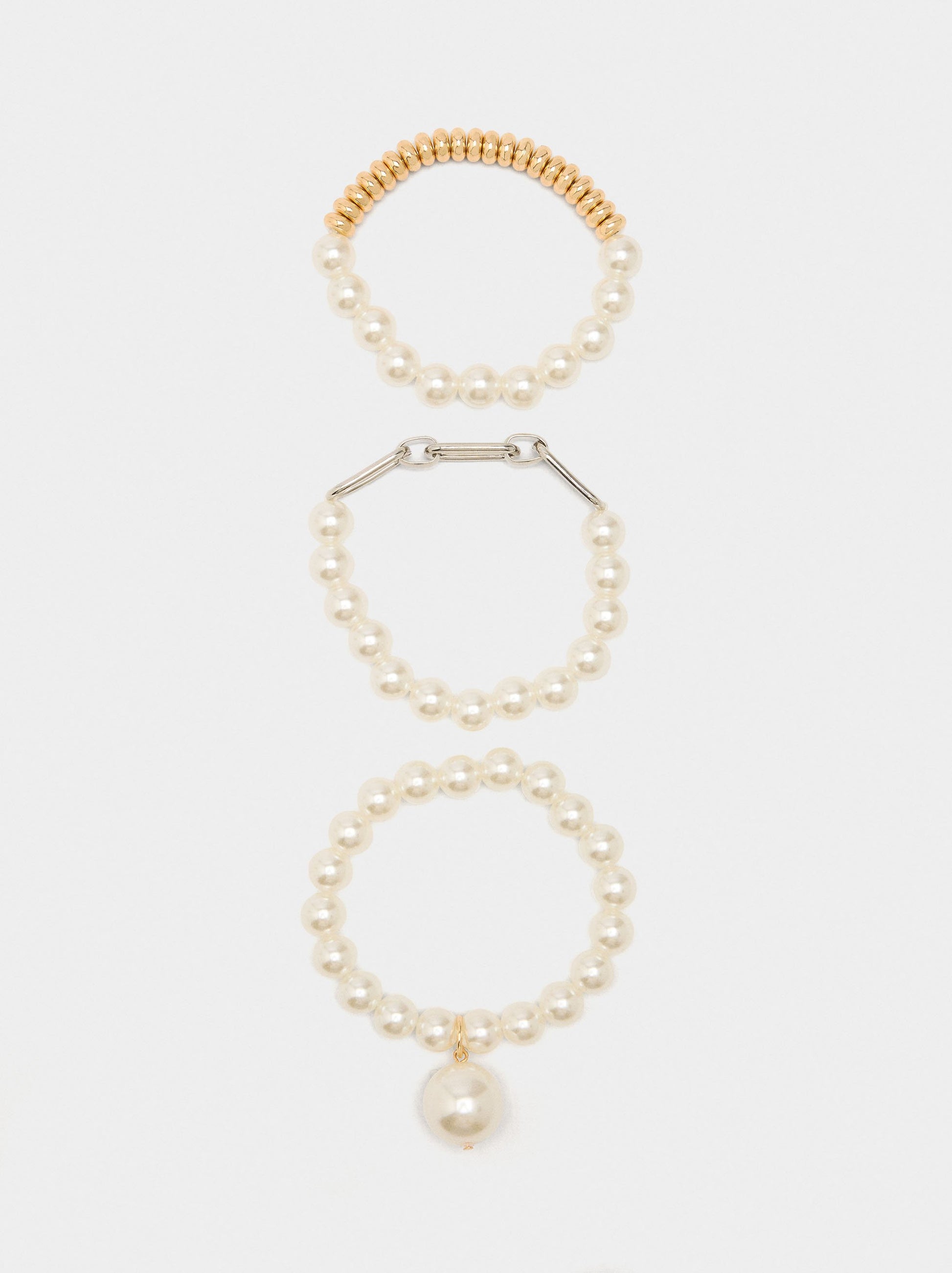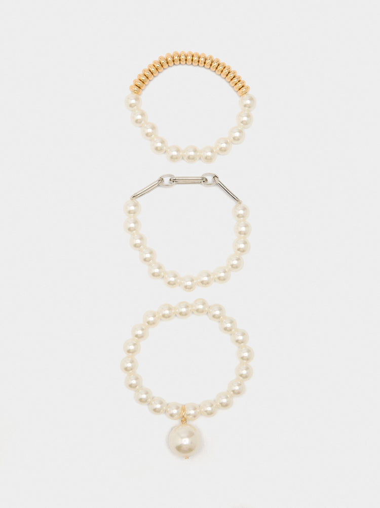 Set Of Elastic Bracelets With Pearls