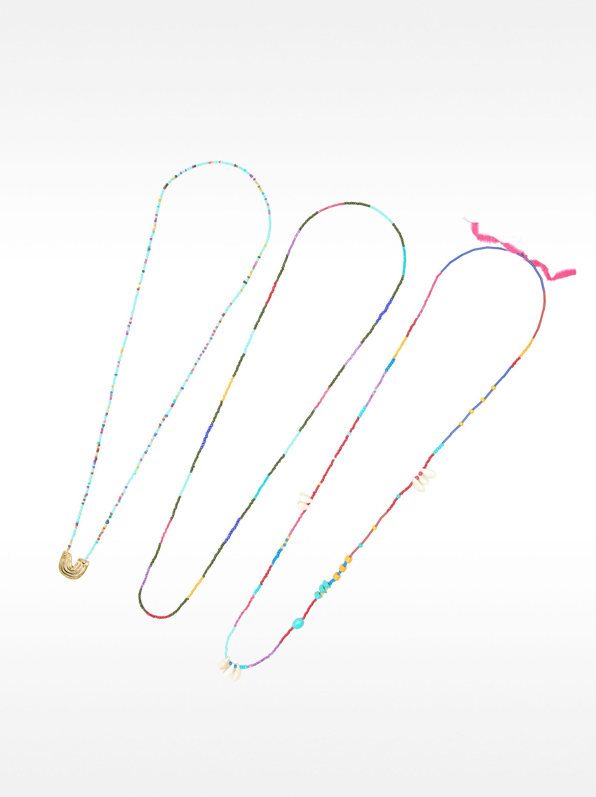 Set Of Necklaces With Multicolor Beads And Pendant