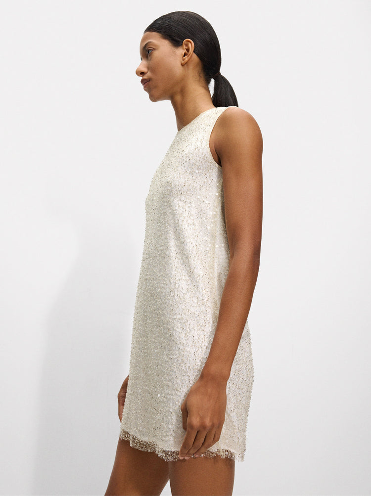 Short Dress With Sequins And Beads