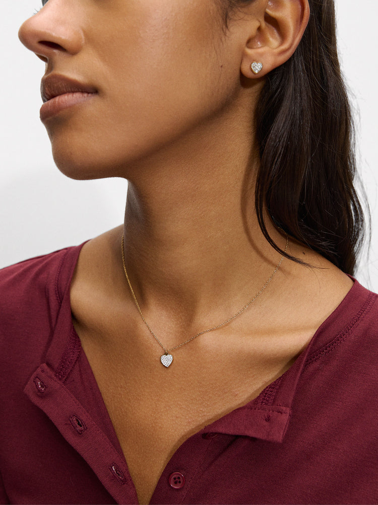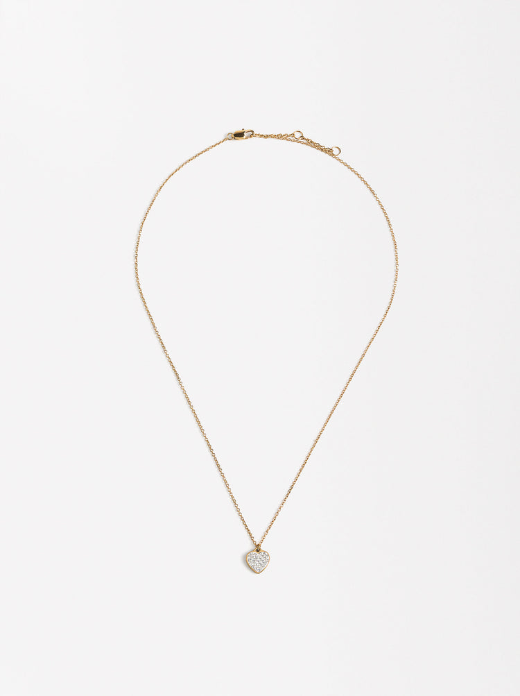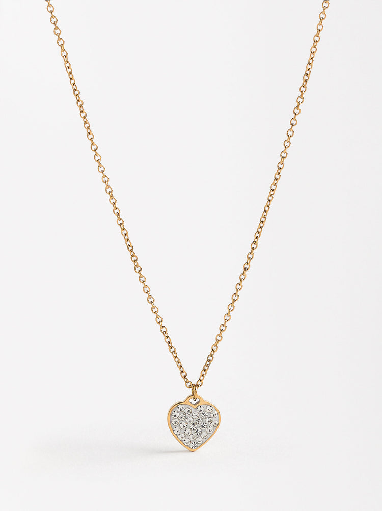 Short Necklace With Heart-Shaped Crystals - Stainless Steel