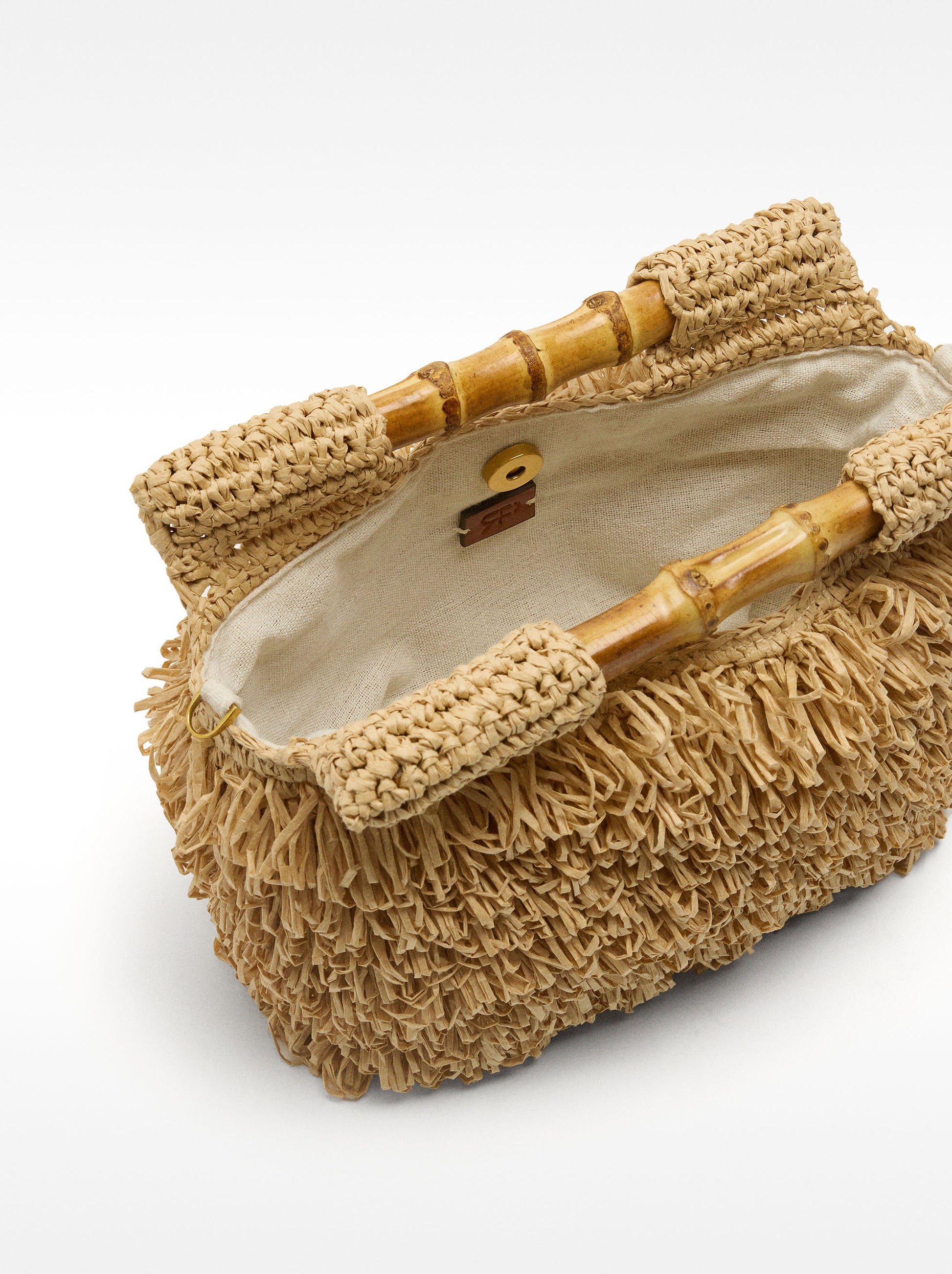 Straw-Effect Handbag With Bamboo