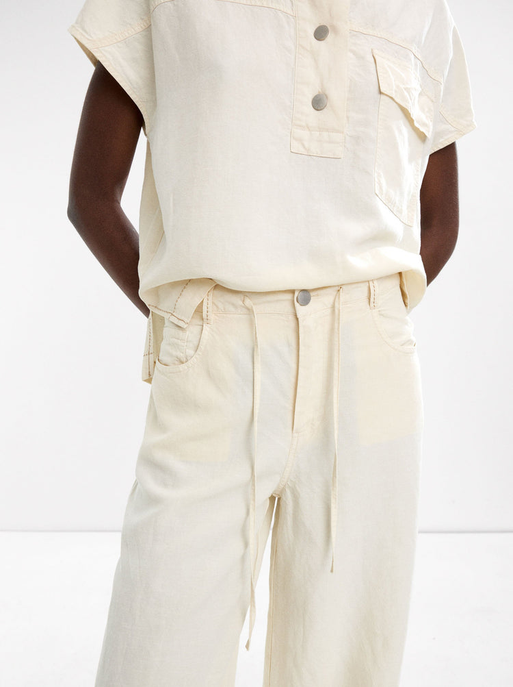 Trousers With Cord And Linen Blend